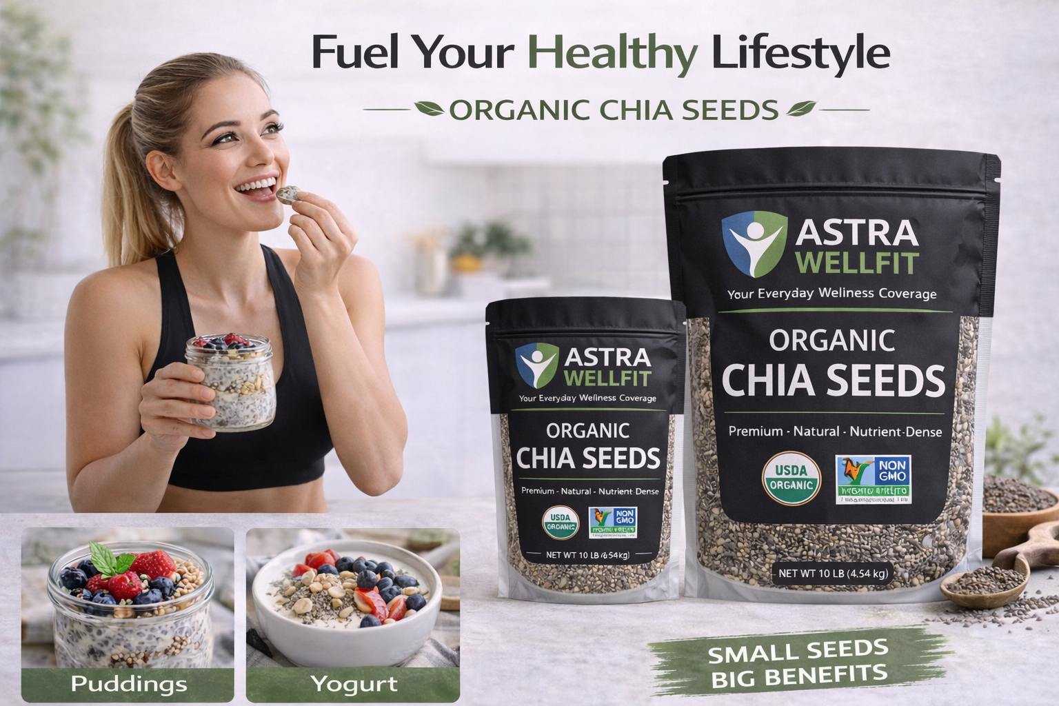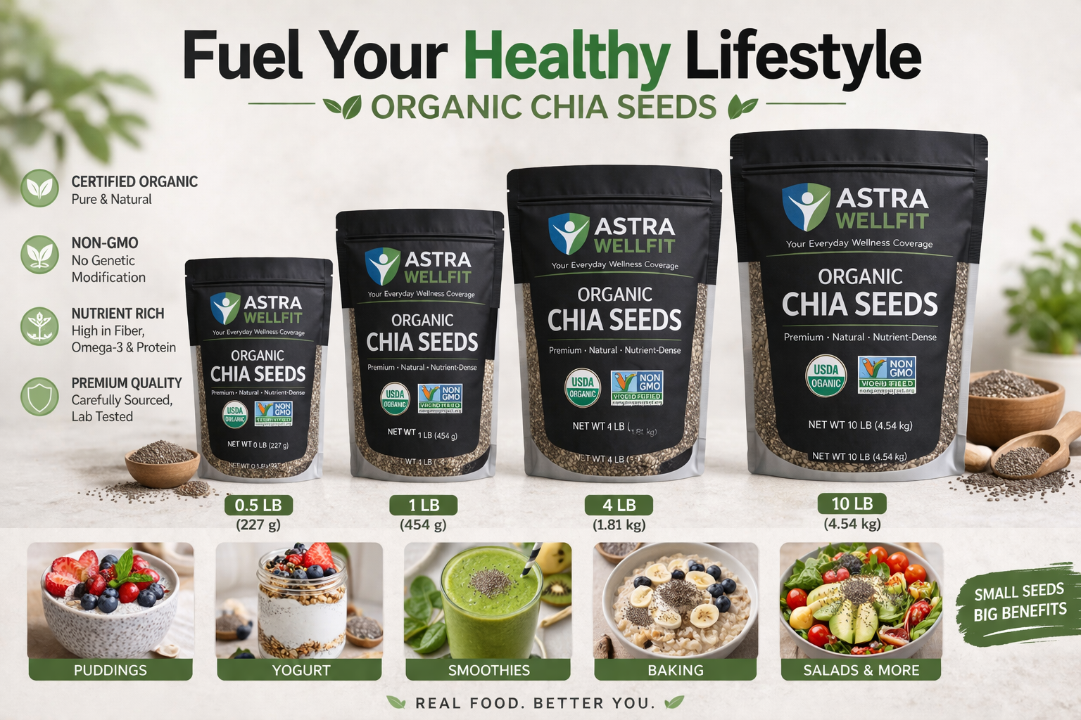 Astra WellFit Organic Chia Seeds – Premium Raw Superfood (Multiple Sizes)