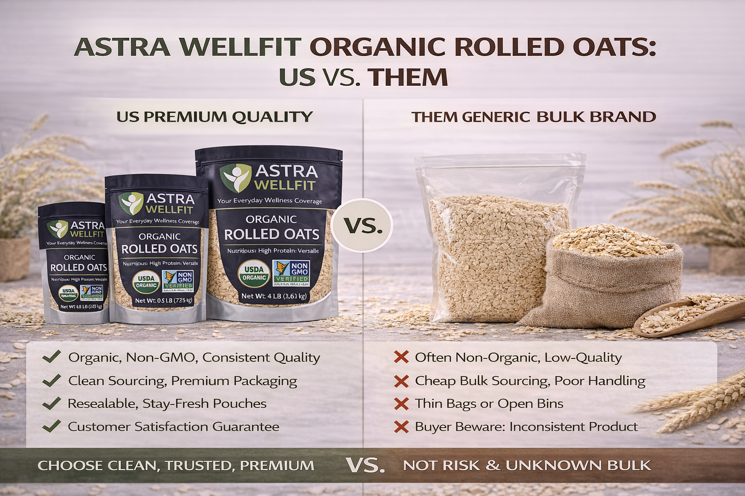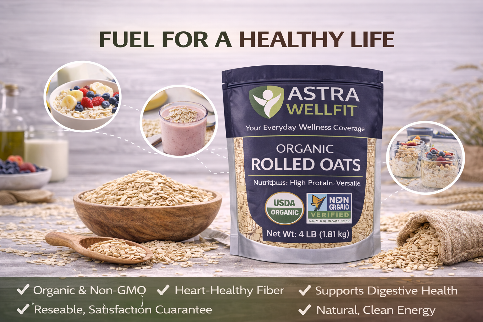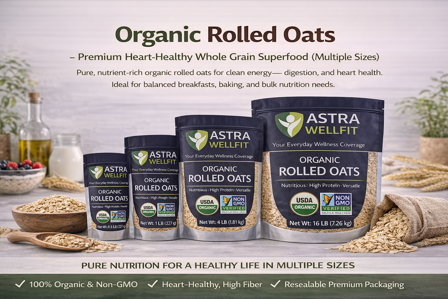 Fuel your day with clean, natural energy. Astra WellFit Organic Rolled Oats are carefully sourced, nutrient-rich whole grains designed to support a healthy lifestyle. Perfect for breakfast, baking, or bulk nutrition, these oats deliver consistent quality you can trust.