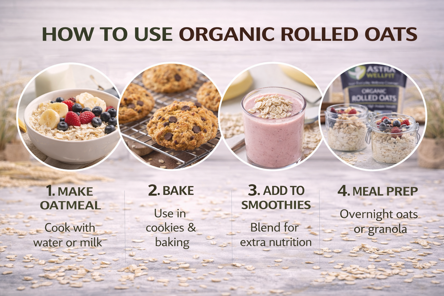 Our organic rolled oats are packed with essential nutrients that help maintain energy levels, improve digestion, and support heart health. Whether you’re preparing a quick breakfast or incorporating oats into your recipes, Astra WellFit ensures premium quality in every serving.